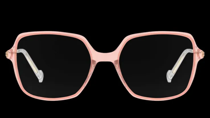 Rektangulära bågar i rosa. Lätta och bekväma acetatbågar.