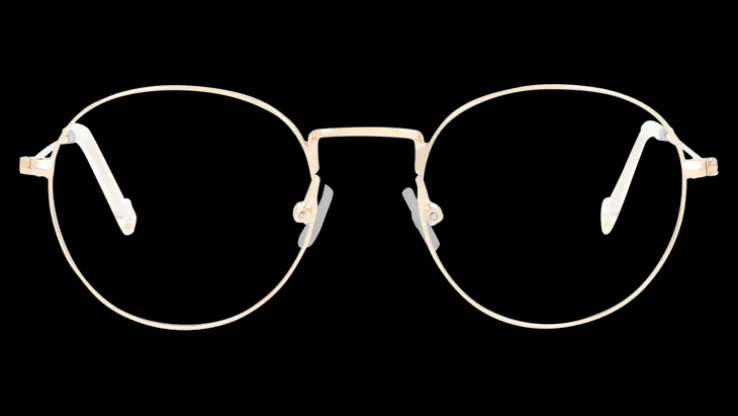 Runda, guldfärgade bågar. Hållbara och bekväma metallbågar.