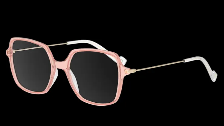 Rektangulära bågar i rosa. Lätta och bekväma acetatbågar.