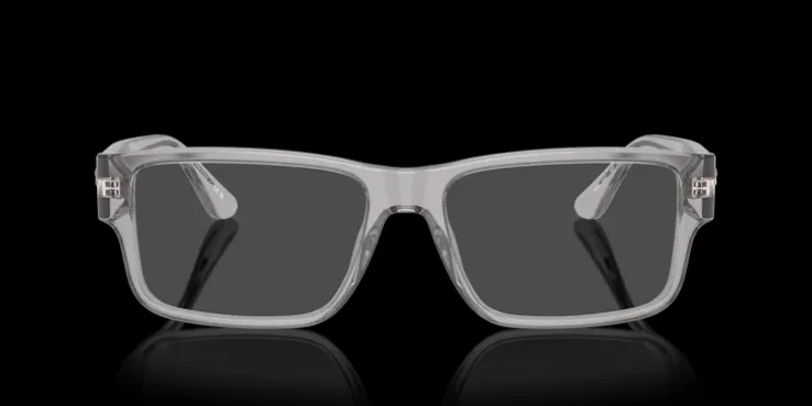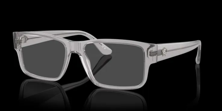 Rektangulära bågar i grått och transparent. Lätta och bekväma bågar i acetat